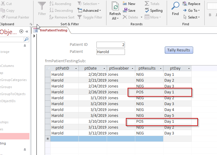 strSQL = "SELECT ptID,ptPatID,ptResults,ptDay FROM tblPatientTesting WHERE ptPatID = " & Me.patID & " ORDER BY ptDate"